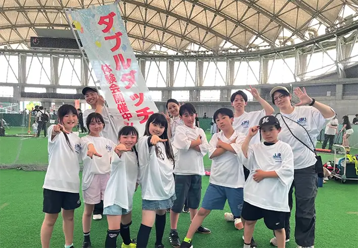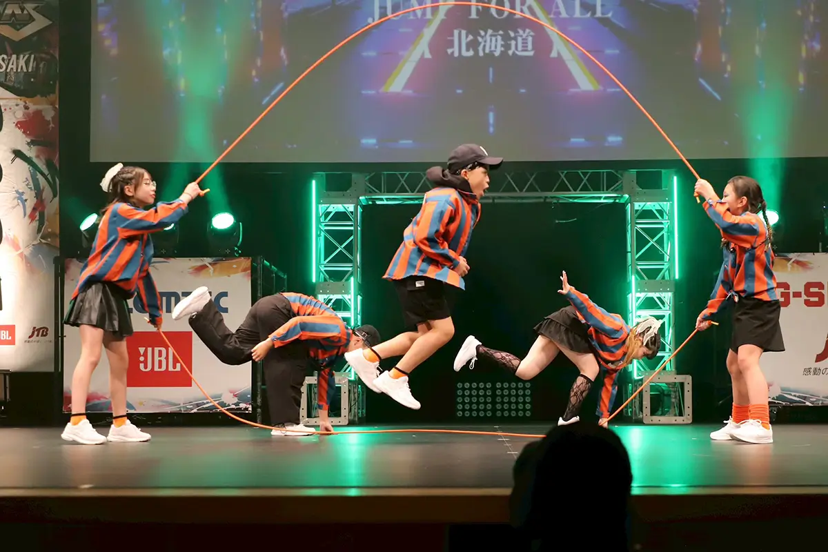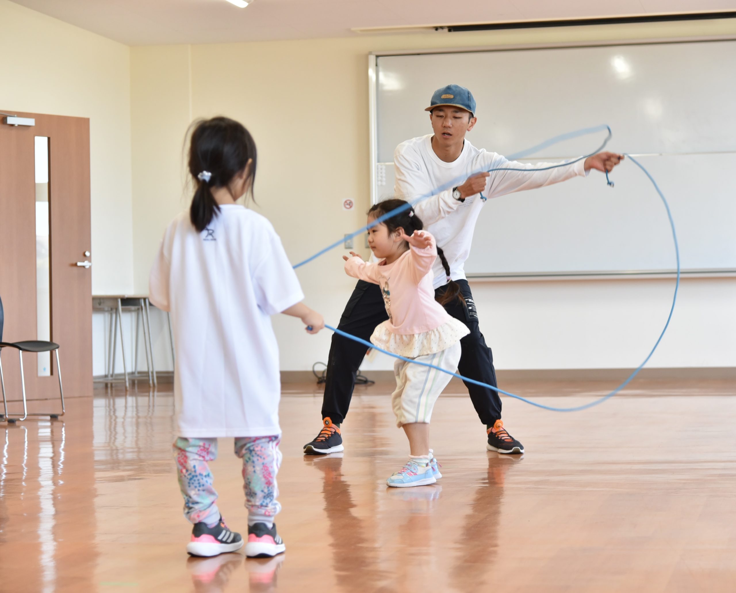 カリキュラム なわとび ダブルダッチ クラス紹介 年間カリキュラム 年間イベント 充実した動画課題 地域交流 なわとびはロープ一本で始められる手軽な運動ですが 実は成長期の子どもの心身に嬉しい効果が沢山あるんです! 跳ぶ動作は、体幹の安定やバランス感覚を鍛え、ジャンプ力や俊敏性の向上に役立ちます。有酸素運動により心肺機能を高めて基礎体力を向上、着地したときの骨への刺激による骨密度の向上など様々な効果があります。 なわとびを続けるには、集中力と忍耐力が必要です。新しい技をマスターしたり、跳べる回数が増えると子供の自信にもつながりますよね。また、体力の向上が学力向上につながったり、着地したときの骨への衝撃が記憶力の向上という研究もあるんです。 ダブルダッチは、2本のロープを使って跳ぶなわとび。2本のロープの中で、ダンス、アクロバット等の技を行います。TV等で一度は見たことがあるのでは無いでしょうか。 取材映像(朝日新聞様)/出演:講師 龍太郎 ダブルダッチは、スポーツとパフォーマンスの両面を兼ね備えたハイブリッドスポーツ。チーム競技の側面も持ち、様々なことが同時に養えるとっても魅力的なスポーツなんです! ダブルダッチは、 スポーツとパフォーマンスの両面を 兼ね備えたハイブリッドスポーツ。 チーム競技の側面も持ち、 様々なことが同時に養える とっても魅力的なスポーツなんです! なわとびの側面では、基礎体力(持久力・瞬発力・バランス力)が向上に適しています。アクロバティックな技を含む体操的な側面もあり、身体の使い方も同時に養えます。 ストリートから端を発したスポーツなので、ダンス・ファッション・音楽など、自由に表現できることが最大の魅力。リズム感/創造力/表現力が養われます。 チームで一つの目標に向かって頑張ることによってチームワークが自然に身に付き、協調性・自主性・コミュニケーション能力が育めます。 ダブルダッチは男女混合でパフォーマンスを行います。女性が男性に劣ることがなく、対等にチームの一員としてプレーできるため、女性にも大変人気のあるスポーツです。 実は日本は世界から見てレベルが高く、 世界大会でも上位入賞は当たり前に。 近年はプロチームも発足し、 ますます競技人口が増えてきています。 JUMP FOR ALLではそんなダブルダッチで、 お子様の個性を活かしながら、 心身ともに成長できる環境をご用意しています! 実は日本は世界から見てレベルが高く、 世界大会でも上位入賞は当たり前に。 近年はプロチームも発足し、 ますます競技人口が増えてきています。 JUMP FOR ALLでは そんなダブルダッチで、 お子様の個性を活かしながら、 心身ともに成長できる環境を ご用意しています! レベル別に4つのクラスがあります!年齢・実力・目標に合わせたクラスをご用意しています。 対象:年中〜年長 時間:45分/月謝:4,850円(税込) 種目:なわとび、ダブルダッチ 対象:年中〜年長 時間:45分 月謝:4,850円(税込) 種目:なわとび、ダブルダッチ この年齢の溢れる個性を活かしながら、のびのびと身体を動かすことを楽しめるクラスです。なわとびを通して人との関わり方を学び、子供たちの心の成長もサポートします。 対象:小学生〜中学生 時間:60分/月謝:5,850円(税込) 種目:なわとび、ダブルダッチ 対象:小学生〜中学生 時間:60分 月謝:5,850円(税込) 種目:なわとび、ダブルダッチ 年齢に合わせたより高いレベルの技術や表現に挑戦するクラスです。仲間とコミュニケーションを取る中で、お互いの個性を尊重することを学びます。 対象:小学生〜中学生 時間:120分/月謝:7,450円(税込) 種目:なわとび、ダブルダッチ 対象:小学生〜中学生 時間:120分 月謝:7,450円(税込) 種目:なわとび、ダブルダッチ 学年・実力・目標などを考慮してチームを作り、心身の成長に合わせたレッスンを行います。「体づくり」「リズム感」「コミュニケーション能力」向上はもちろん、パフォーマンス表現を通して、 思いを伝える力を身につけることを目指します。 対象:小学生〜中学生 時間:週2コース/月謝:13,600円(税込) 種目:なわとび、ダブルダッチ 対象:小学生〜中学生 時間:週2コース 月謝:13,600円(税込) 種目:なわとび、ダブルダッチ なわとびやダブルダッチの日本一を目指します。技術だけでなく、この競技を通して挨拶や精神面、チームワークづくりなどを身につけることを目指す専門コースです。 4〜6月 とにかく跳ぶ基礎の期間 7〜9月 全員で合わせ魅せるパフォーマンス期間 10〜12月 体力つけ回数とび集中期間 1〜3月 1年の集大成まとめ 5〜7月 ダブルダッチステップバトル”freely” 9月 ジャンプロープフェスティバル”ぽてと杯” 10月 全道なわとび大会 12月 オンライン動画大会 など様々なイベントがあり、その子にあったイベントを選ぶことができます! *ぽてと杯のみ全員参加 地元で開催されているお祭りにて出演することも!